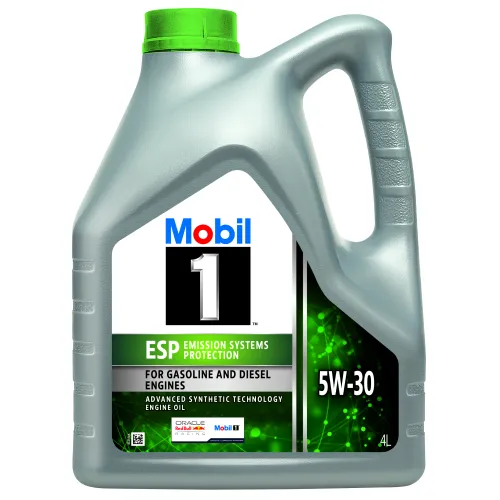 Mobil 1 ™ ESP 5W-30 - синтетична моторна олива з поліпшеними експлуатаційними властивостями, розроблене для забезпечення високого рівня чистоти двигуна, загальних експлуатаційних характеристик і захисту від зносу. Олива Mobil 1 ESP 5W-30 було розроблено експертами компанії для продовження терміну служби і підтримки ефективності систем зниження токсичності вихлопних газів дизельних і бензинових автомобілів. Олива Mobil 1 ESP 5W-30 відповідає вимогам багатьох галузевих стандартів і передових автовиробників, які пред'являються до сучасних дизельних і бензинових легкових автомобілів, або перевершує такі вимоги.